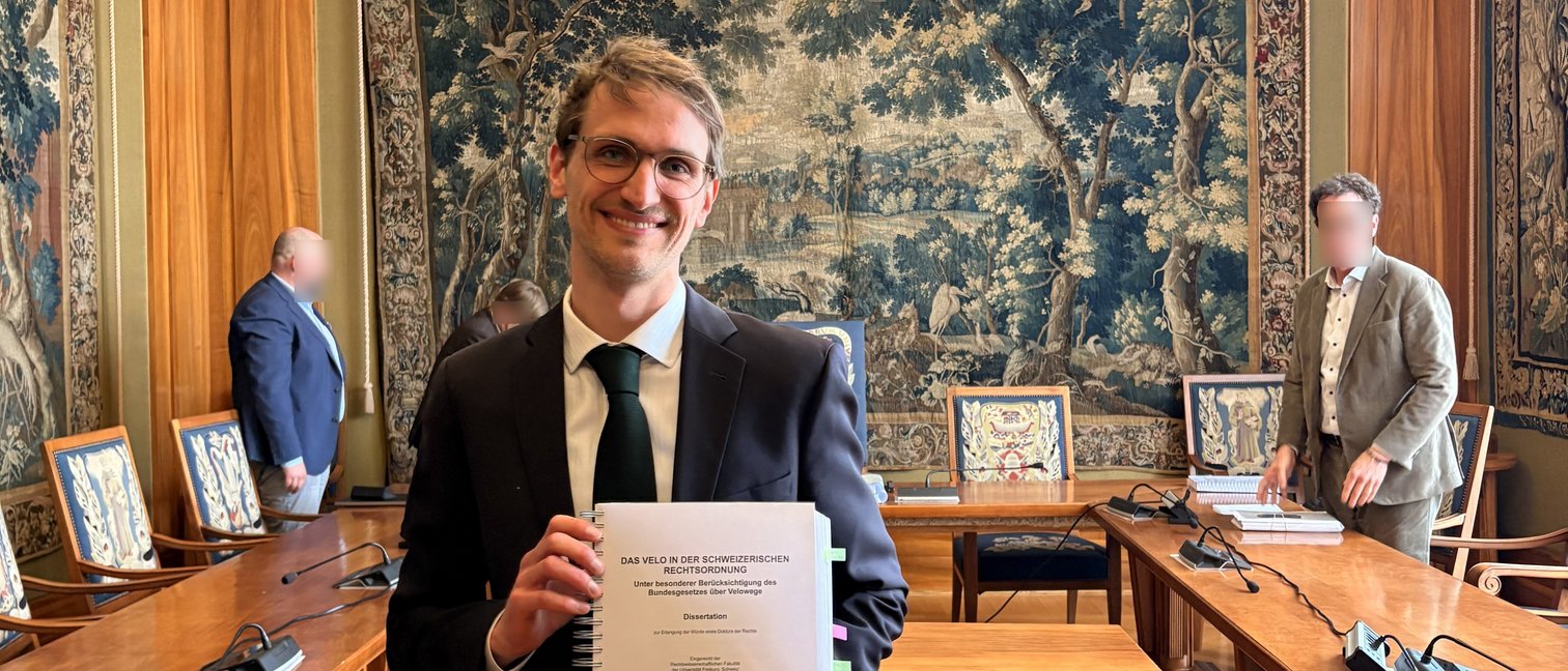 Unsere Gesellschaft wird zunehmend vom Velo geprägt. Klar, dass sich daraus auch neue und rechtliche Fragen ergeben. Oliver hat sich dessen angenommen und seine Dissertation «Das Velo im öffentlichen Recht» mit summa cum laude erfolgreich verteidigt. Demnächst wird die Arbeit als Buch veröffentlicht, womit sein Weg zum Doktortitel der Rechtswissenschaften vollendet wird.